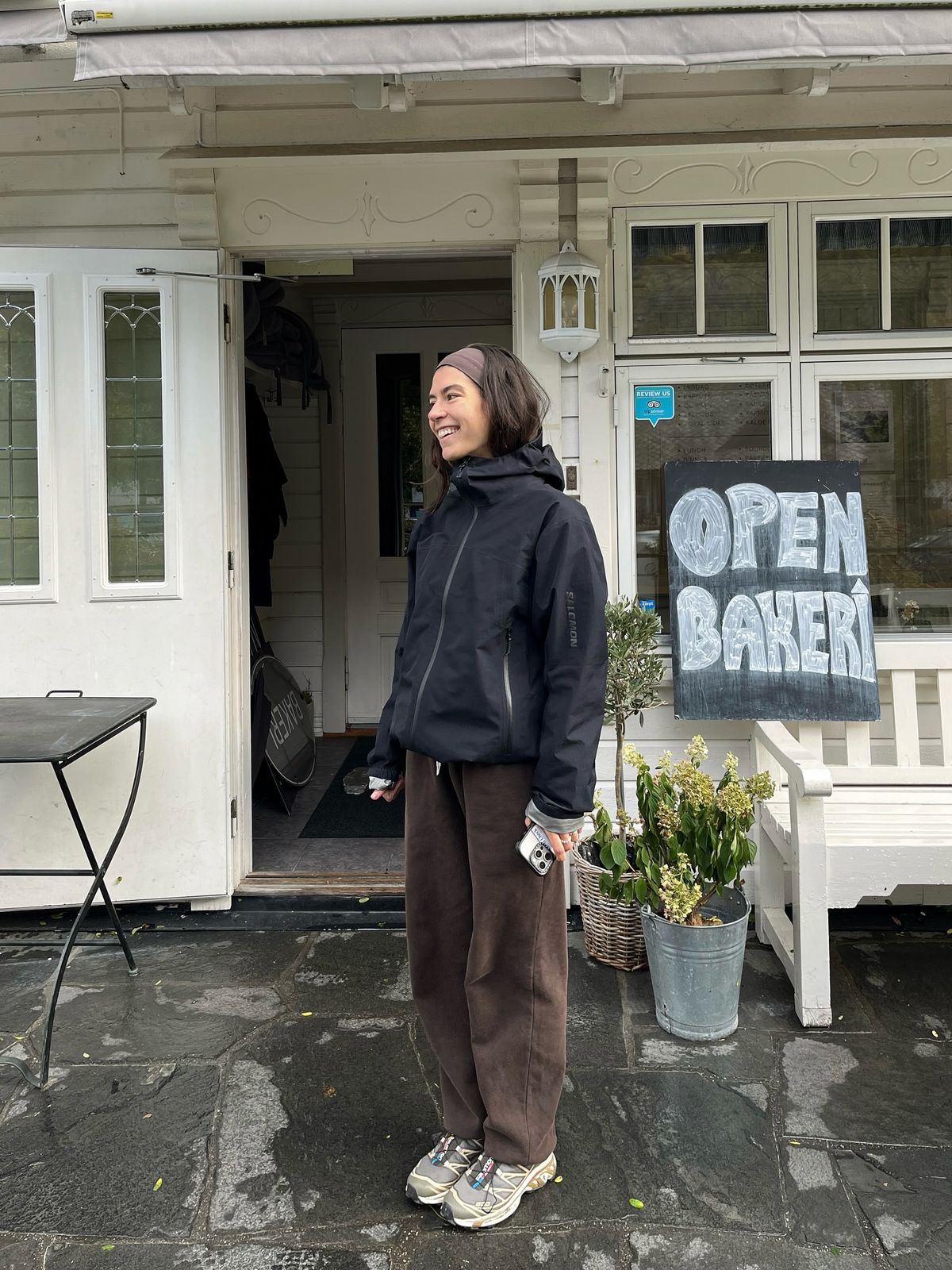 신발은 청키한 실루엣의 어글리 슈즈나 살로몬 같은 트레킹화를 매치하면 고프코어 감성을 한 스푼 더 끌어올릴 수 있습니다.
