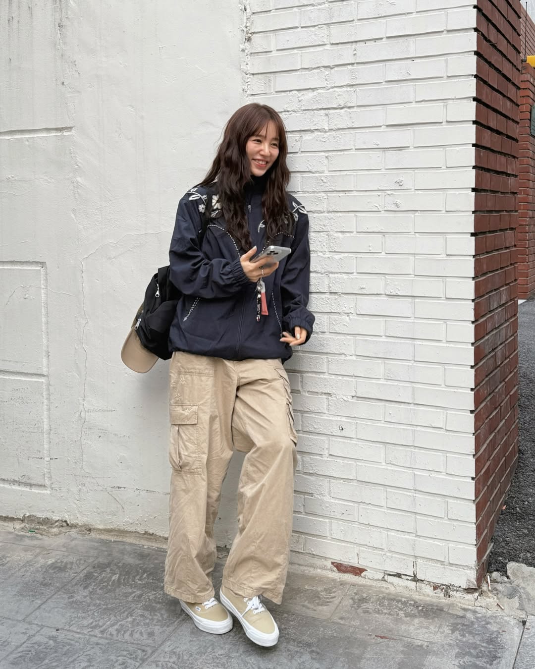 1. 윈드브레이커 + 카고 팬츠 : 스트릿 고프코어 룩의 정석 힙스터 등극! 🎧