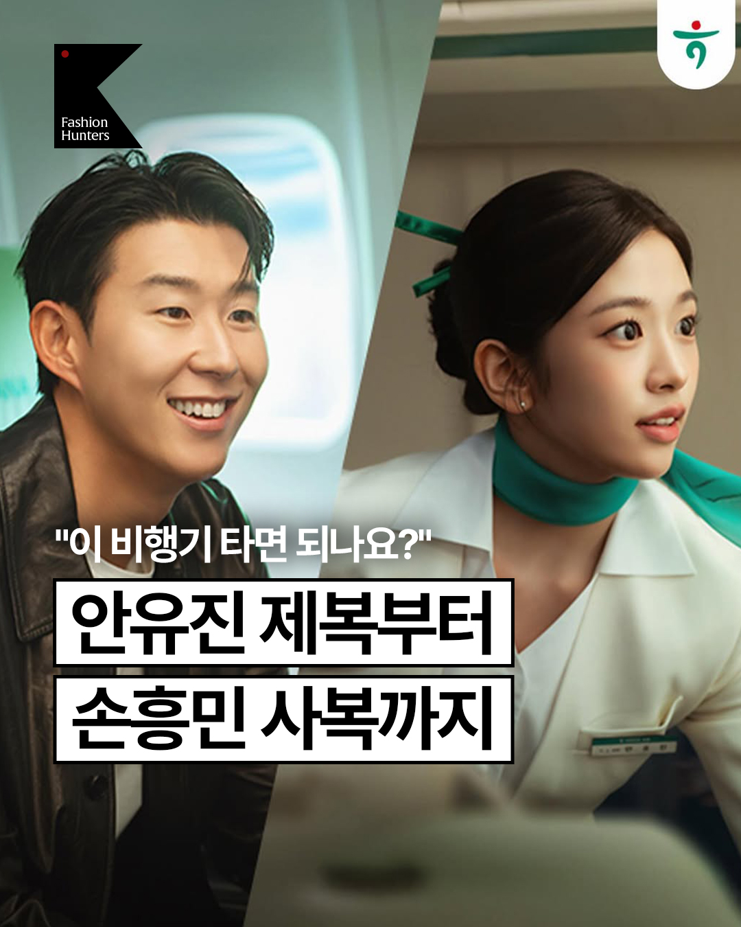 이번 광고의 문을 여는 가장 강력한 한 방! 바로 승무원으로 변신한 안유진과 강호동의 조합입니다.