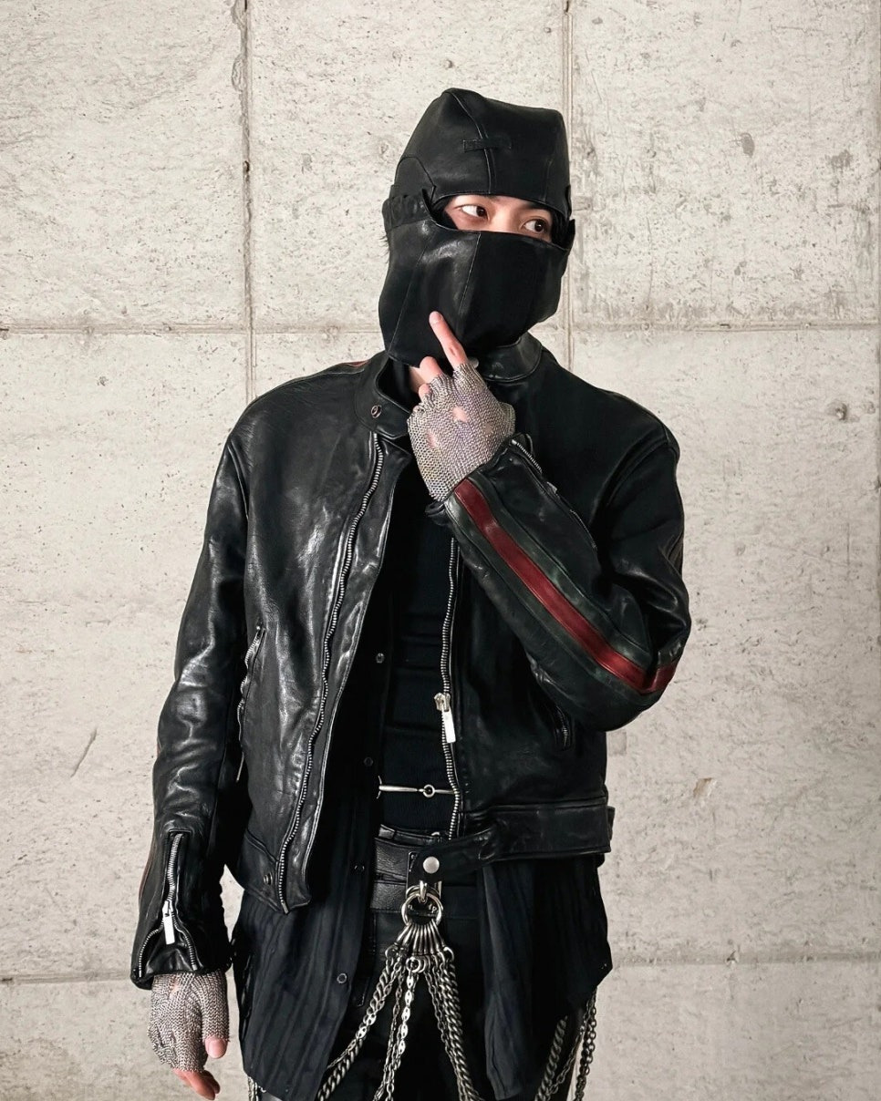 올블랙 룩에 강력한 포인트를 주었으며, 궁극의 '쎈오빠 룩'을 완성했습니다.